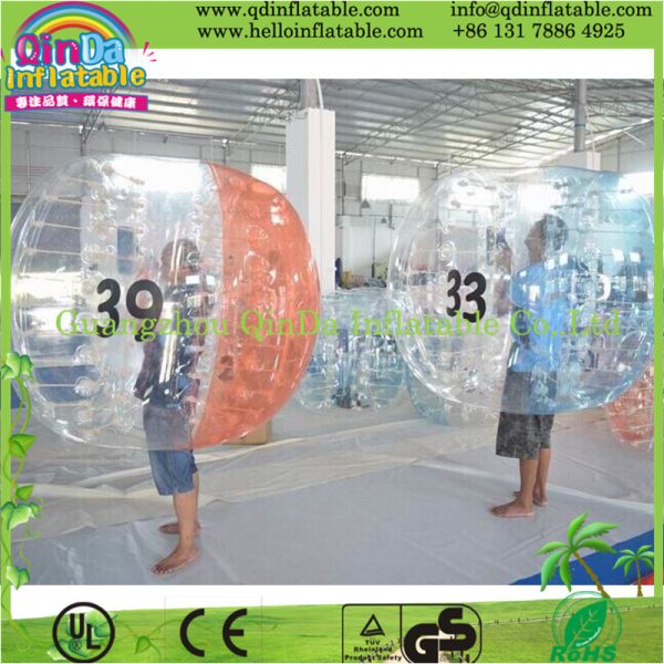 Bumper Ball is also called Body Zorb, Body Zorb Ball, Body Bumper Ball, Inflatable Bumper Ball, etc. It is the newest activity for 2013, Bumper ball is physical, exhilarating, and enormous fun for children and adults. Users can strap on the Bumper Ball and 'bump' into each other, much like a Sumo Wrestler game. Bumper Ball competitors can run into each other, roll on the ground, and even jump on each other using the Bumper Ball inflatable. It is suitable for family backyard, playing center, etc.